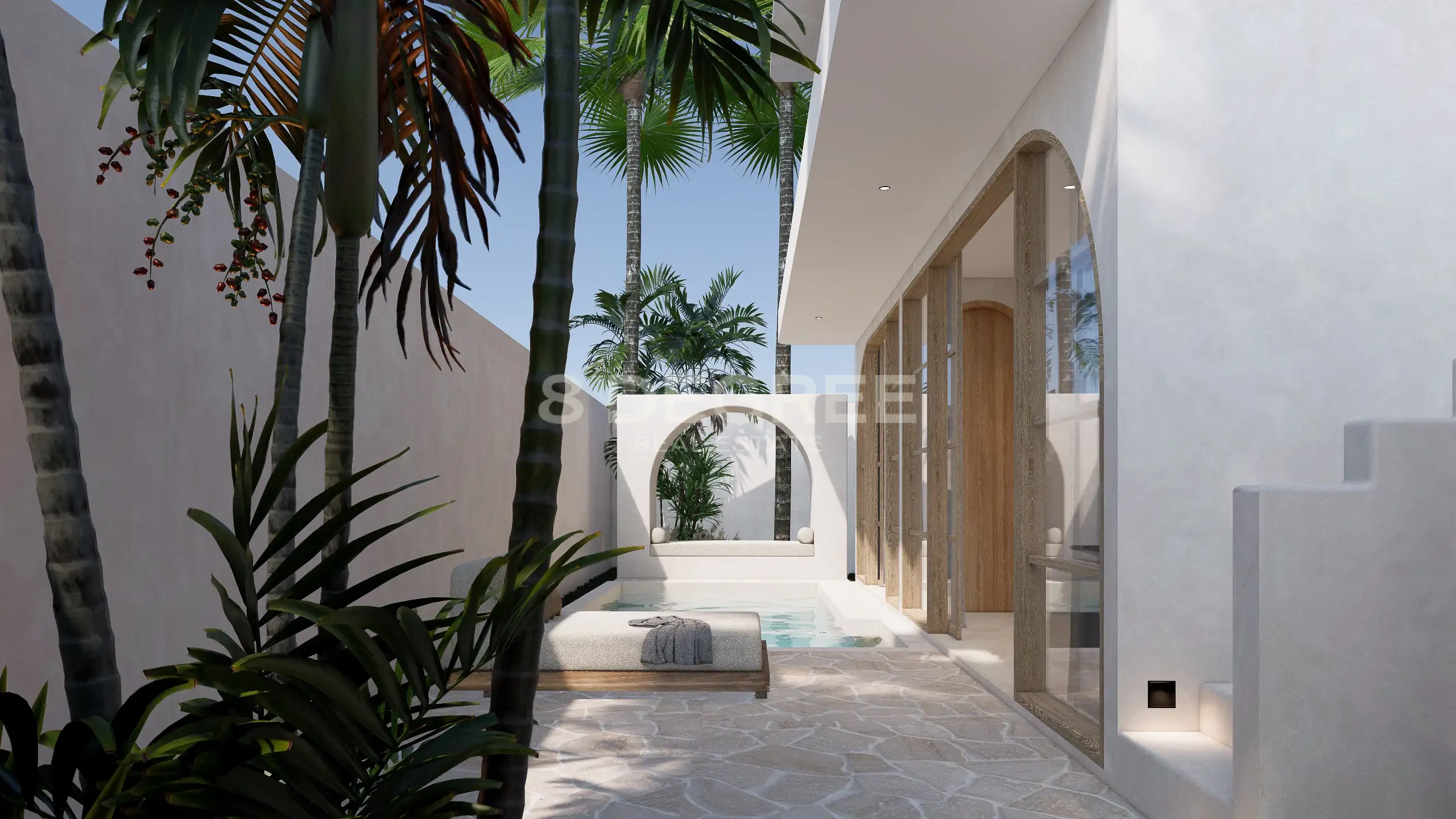 Designed with modern architecture and warm Mediterranean touches, the villa features arched glass openings, natural stone finishes, and airy living spaces that seamlessly connect to your private pool and landscaped garden. Whether you’re seeking a stylish residence or a profitable investment in Bali’s booming south, this villa is an excellent choice.