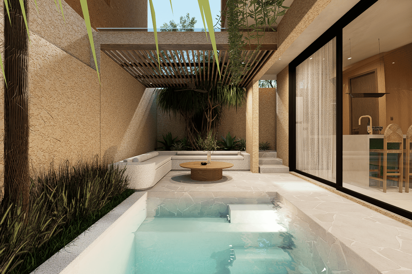 Enclosed living room with direct pool access