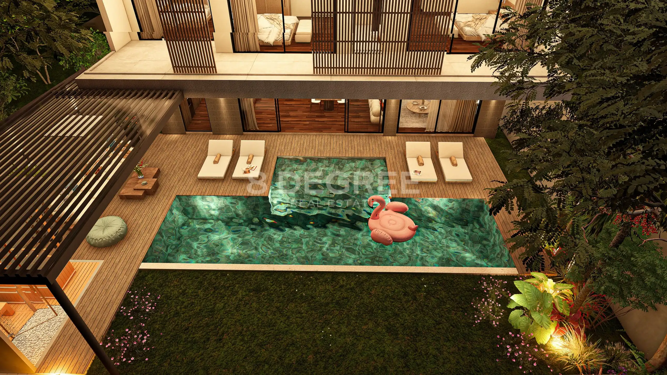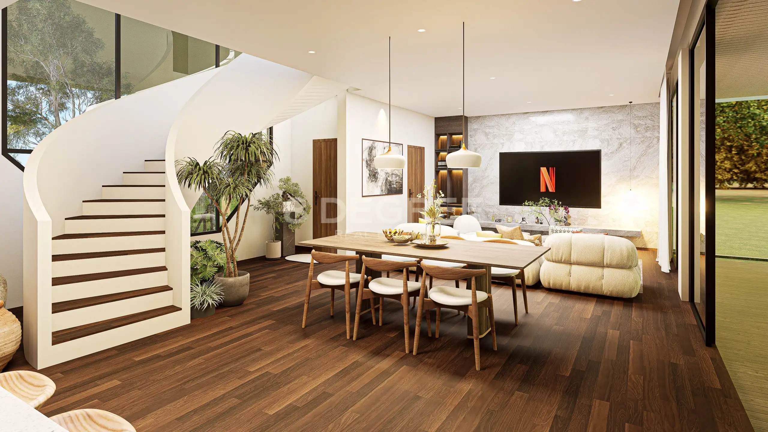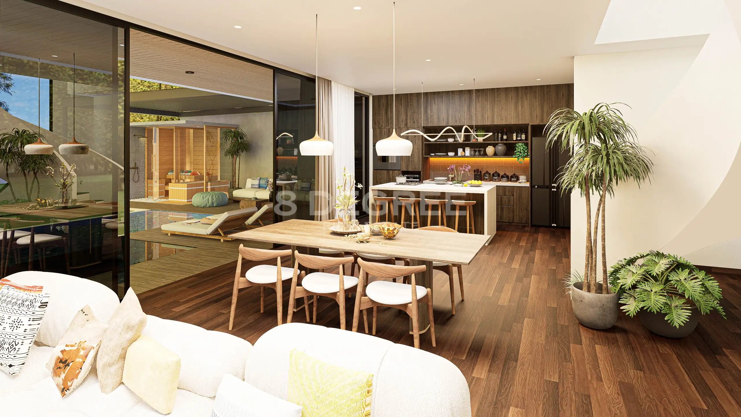 This beautifully designed 3-bedroom villa embodies a perfect balance of tropical elegance and modern functionality. Featuring a spacious open-plan layout, large glass windows that invite natural light, and seamless indoor-outdoor living, this villa captures the essence of luxury tropical living in Bali.