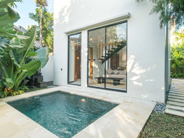 Nestled in Pecatu, one of Uluwatu’s most desirable residential enclaves, this modern 2-bedroom villa captures the essence of luxury coastal living — complete with unobstructed ocean views, a private rooftop plunge pool, and tropical contemporary design.